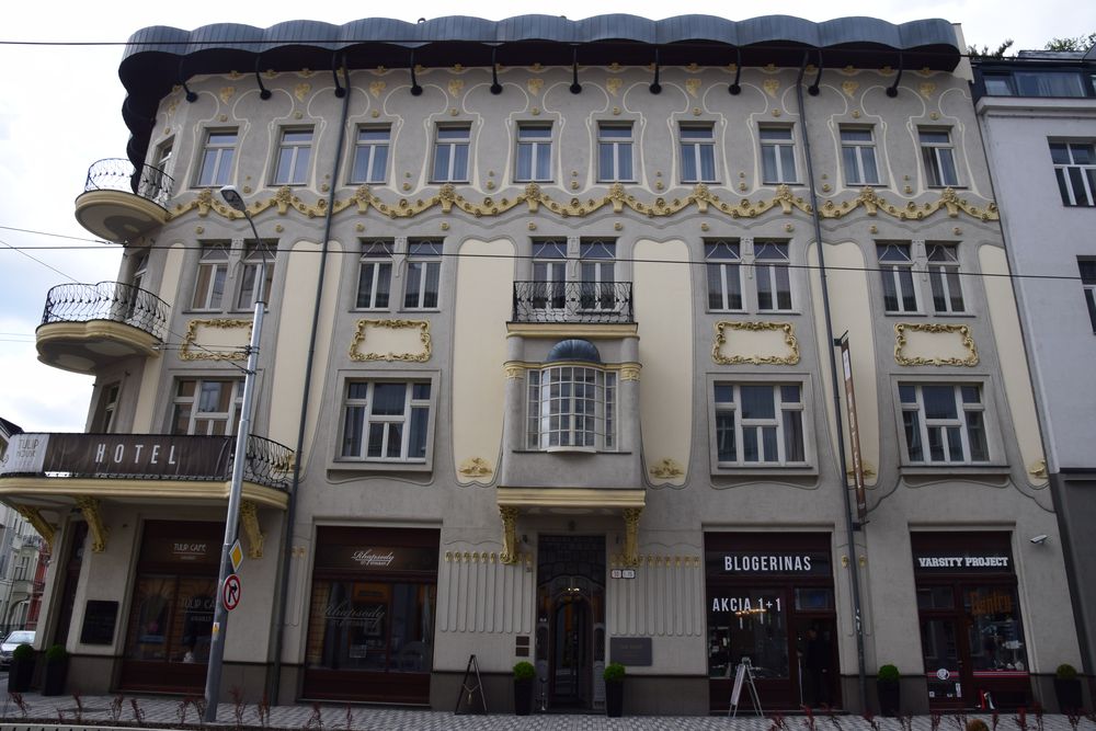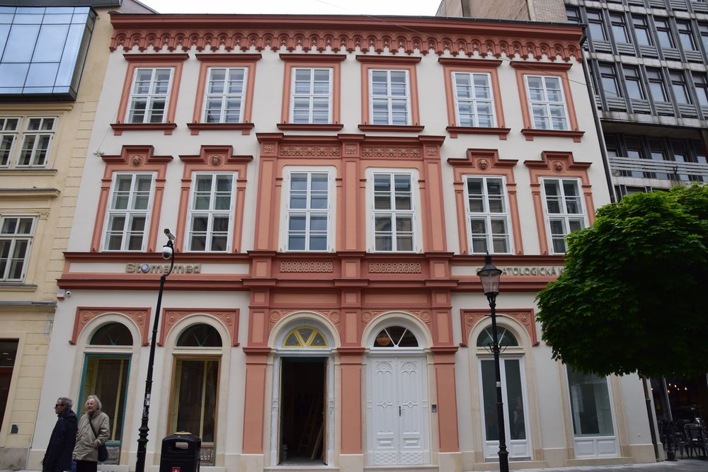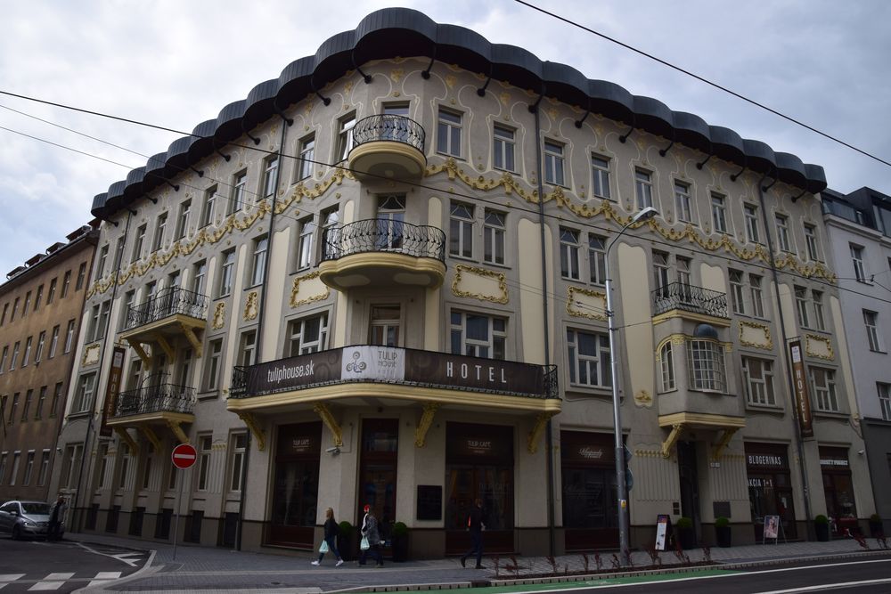 La Maison aux tulipes, 10 rue Sturova, bien rénovée et transformée en hôtel a été imaginée par Jeno Schiller.