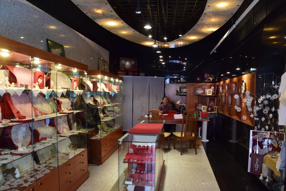 J’ai été étonnée par le travail minutieux et inattendu des bijoux broderies, bracelets, colliers ou boucles d’oreille.