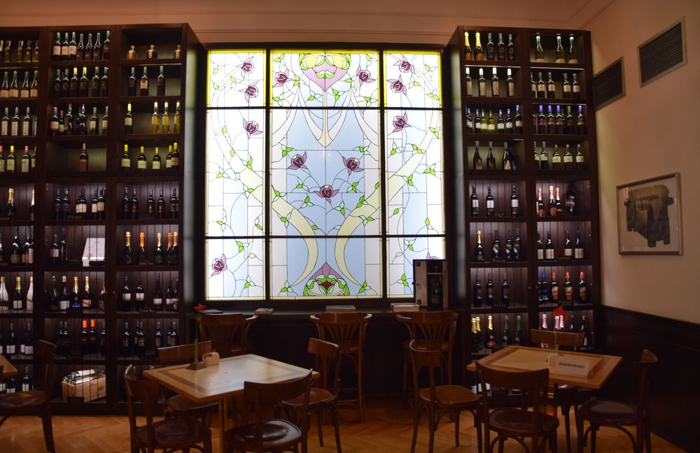 Vitrail fleuri de la vinothèque du Grand Hôtel Union de Ljubljana.