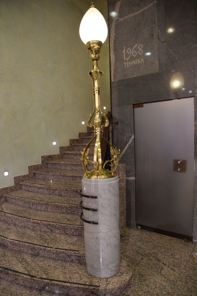 Luminaire au bas d’un escalier du Grand Hôtel Union à Ljubljana.