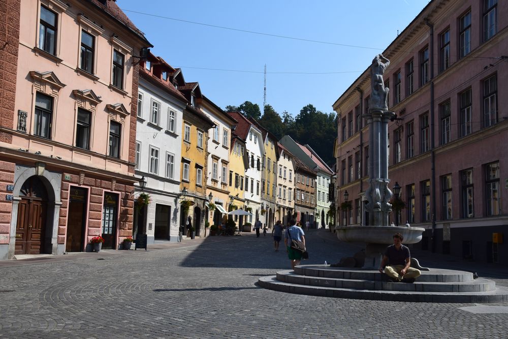 Une fontaine de la Veille Ville de Ljubljana accueillante pour se reposer.