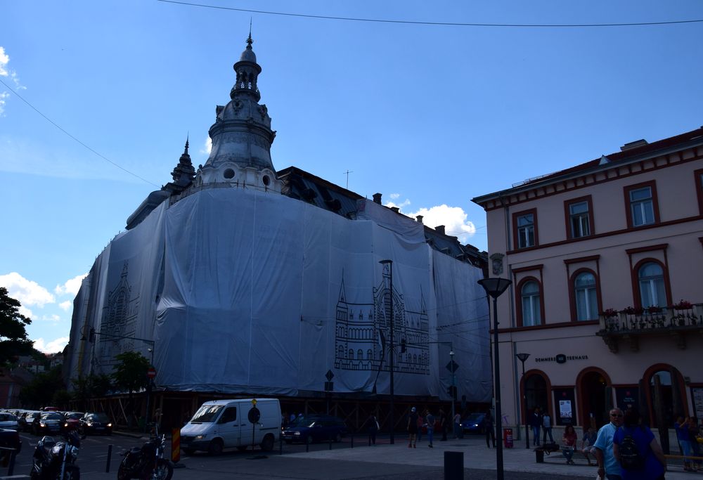 Des travaux de rénovation de l’extérieur sont envisagés et pourraient durer cinq ans. Sa façade principale avec ses demi-tourelles en relief qui mettent en valeur la mosaïque monumentale réalisée à partir d’une peinture d’Aladar Körösföi-Kriesch est en harmonie avec la qualité des décors intérieurs. Il est dommage que ce bâtiment connu par quelques amateurs ne soient pas mieux documenté et qu’on ne fasse pas l’objet d’un ouvrage très précis, au moins en anglais, pour faire un inventaire détaillé des interventions de tous les artistes qui ont participé à un ce chef-d’œuvre Targu Mures dispose par ailleurs, d’un patrimoine de valeur qui mériterait d’être mieux identifié et valorisé auprès de touristes amateurs d’art.