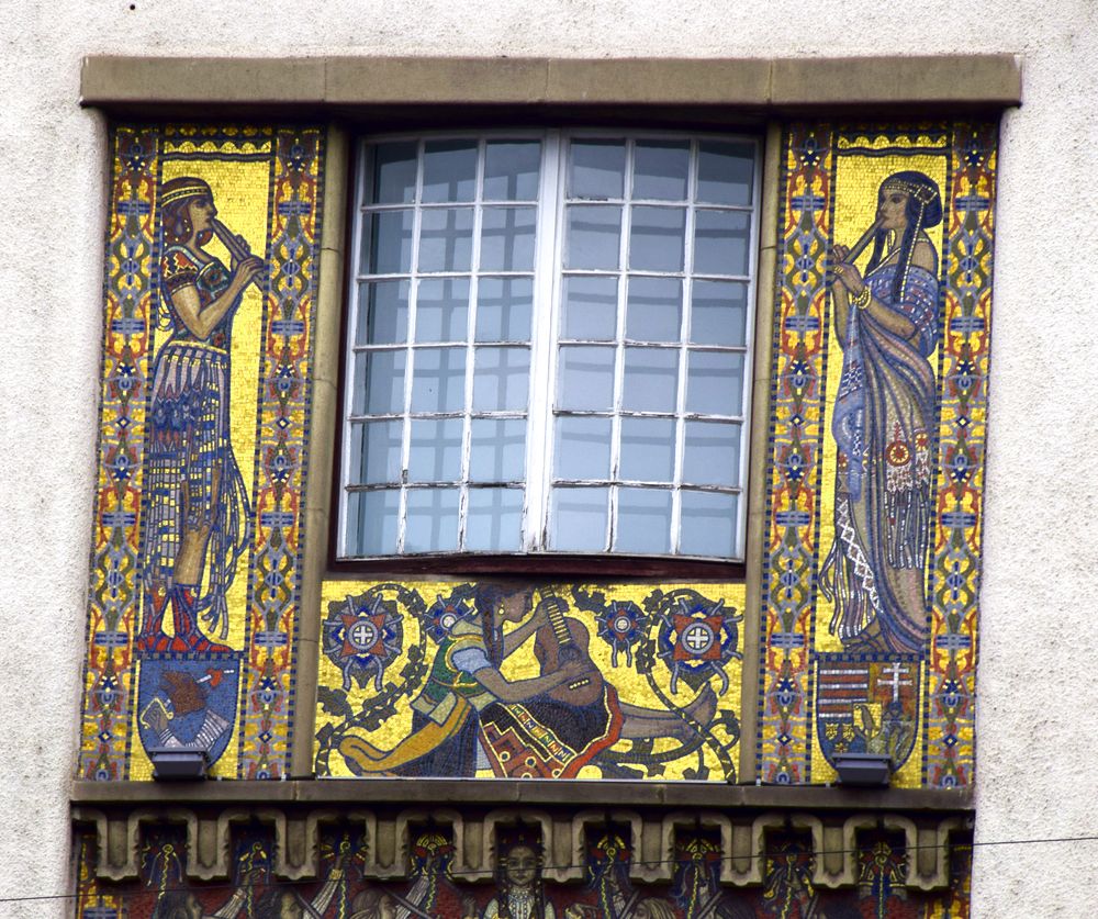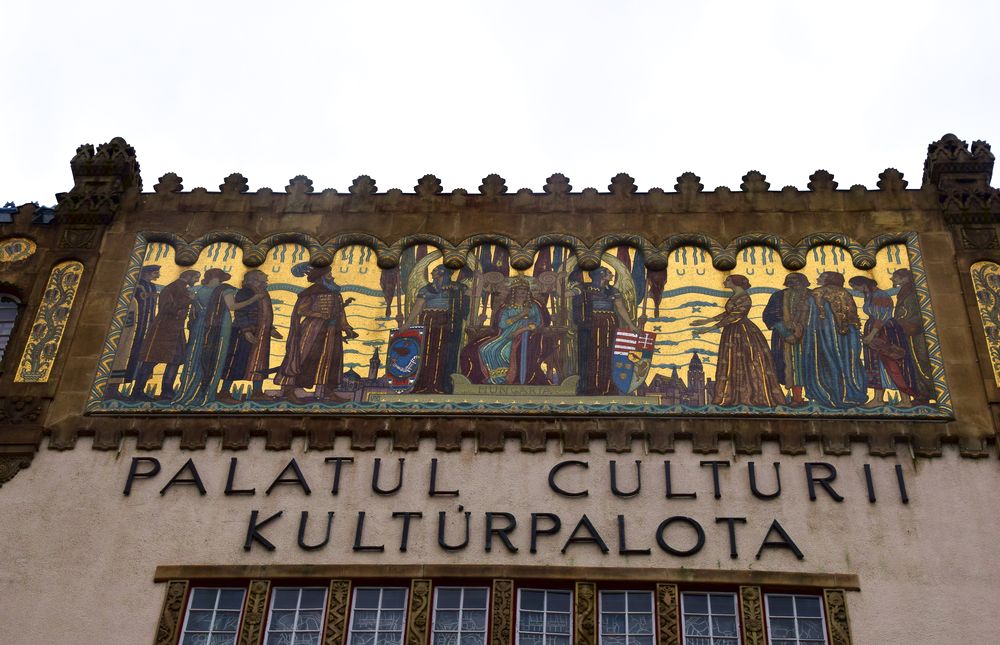 Mosaïques sur la façade du Palais de la Culture de Targu Mures.
