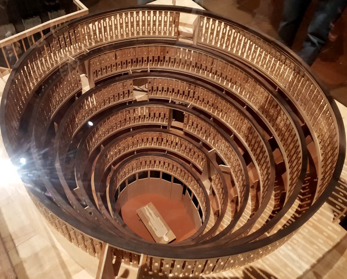Maquette du Teatro Anatomico dont les gradins convergent vers la table d’autopsie.