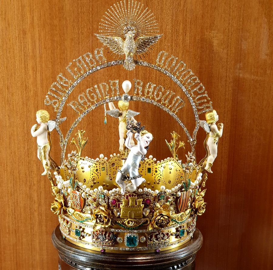 La couronne de la Vierge des rois créée en 1904 par Pedro Vives et Manuel de la Torre m’a particulièrement attirée par la qualité du travail des orfèvres, la richesse de ses décors très fins et la beauté de ses pierres.