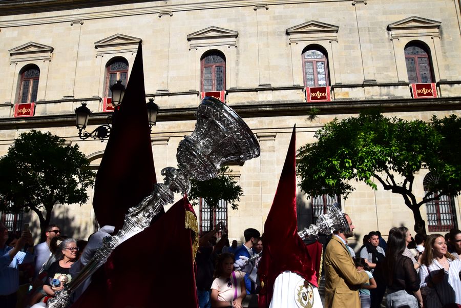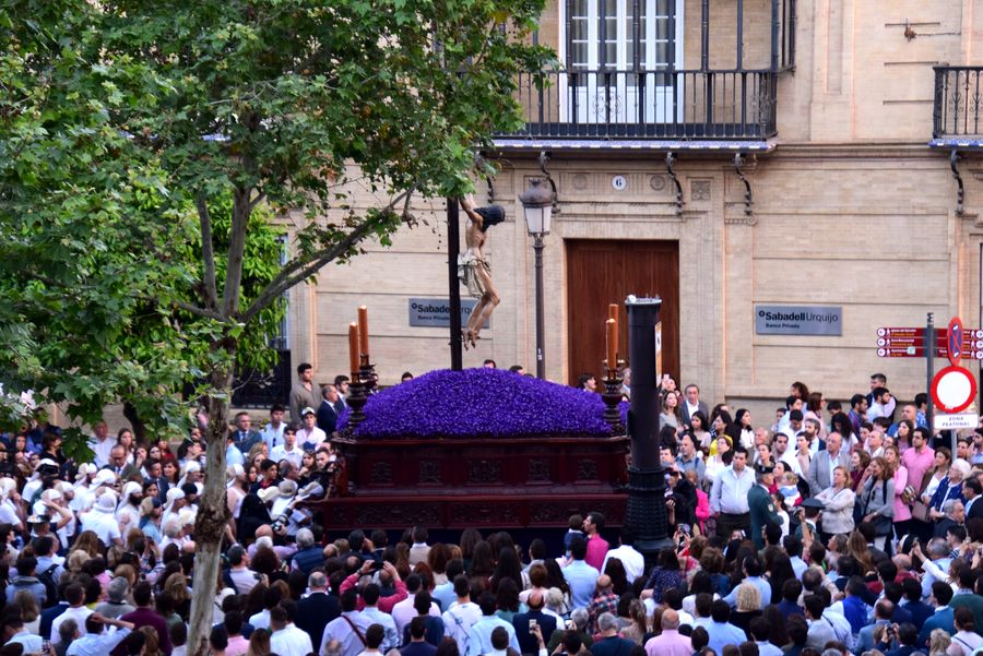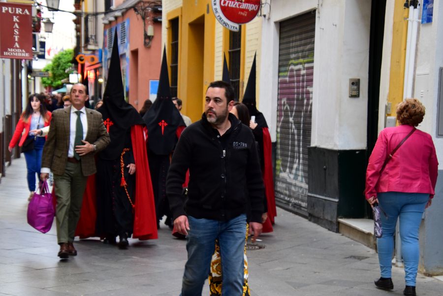 Les confréries El Silencio, El Gran Poder, La Macarena, El Calvero, La Esperanza de Triana et Los Gitanos défilent cette nuit-là. Mais toute la Semaine Sainte est jalonnée de nombreuses processions qui défilent dans le centre où les voitures sont interdites et où le tramway ne roule plus. Les règles et les codes sont tellement stricts que sur les applications Paso a Paso ou Semana Santa de Sevilla on peut voir quelles fleurs et de quelles couleurs doivent orner les palios.