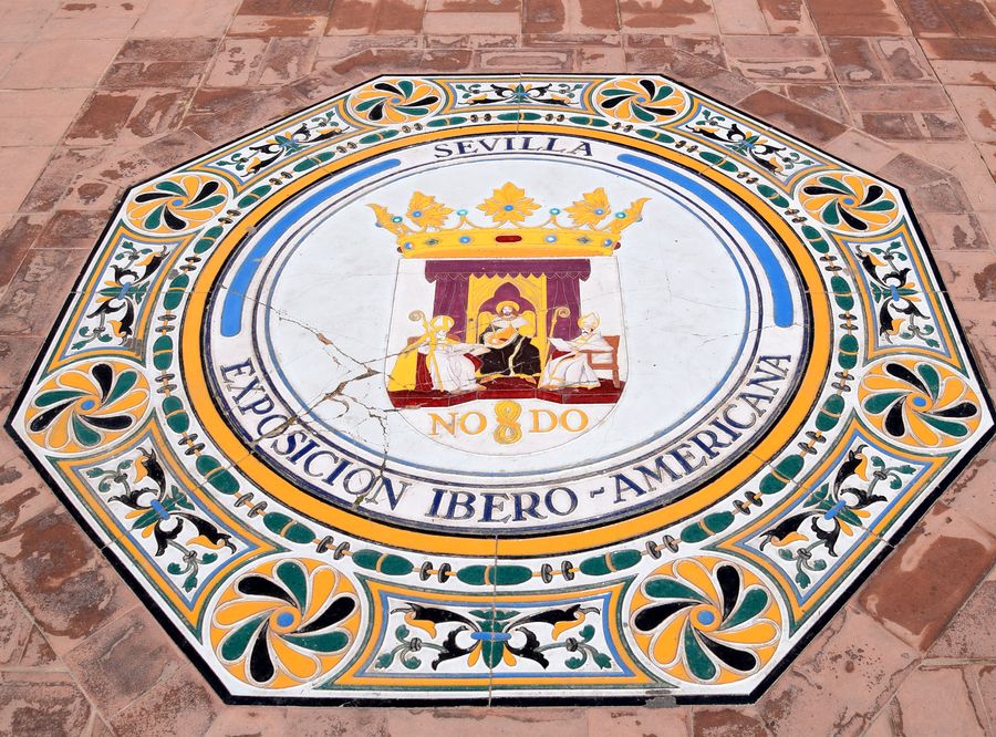 Blason de Séville inscrusté dans le sol de la place d’Espagne.