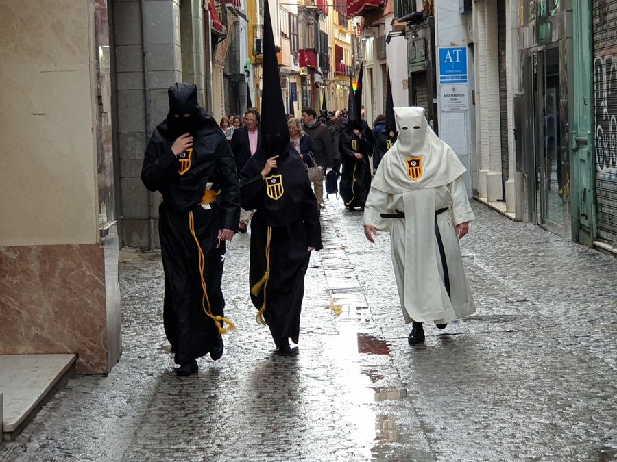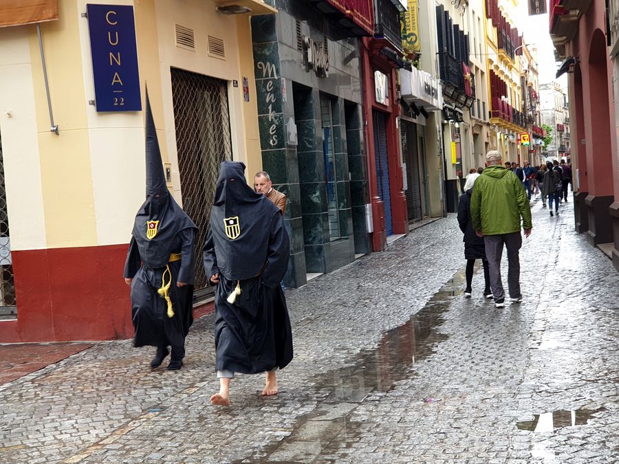 Mais dès le lendemain matin, la ville est d’une propreté étonnante. Les nazarenos qui autrefois déambulaient pieds nus sont devenus rarissimes et je n’ai pas vu de pénitents traînant boulets ou chaînes ou se flagellant, attitudes extrêmes que certains pouvaient trouver choquantes mais qui traduisaient l’engagement fort de ces catholiques dans le repentir.