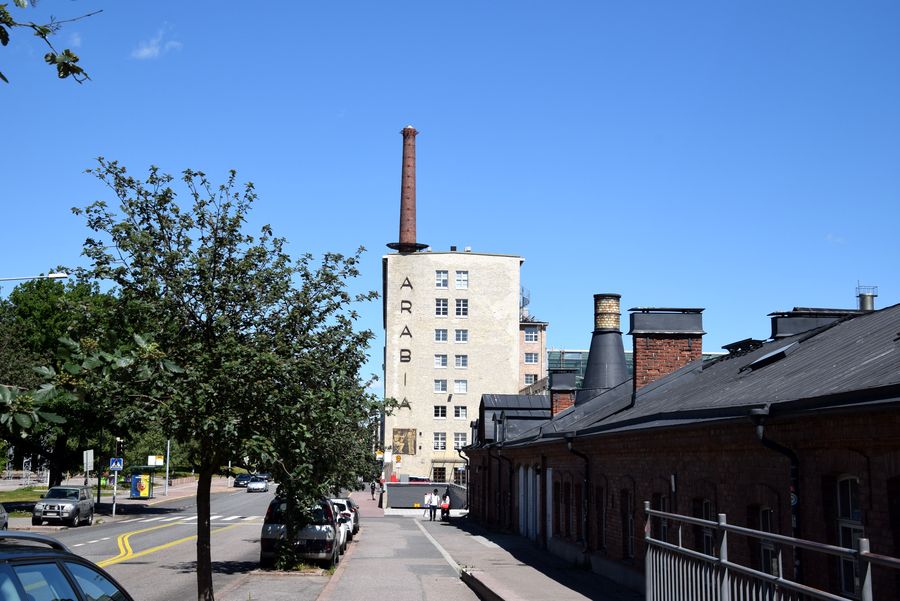 Au bout des anciens ateliers en briques, le bâtiment du centre du design d’Helsinki.