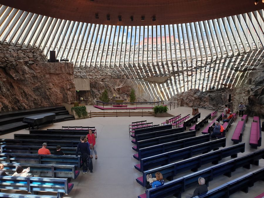 J’étais très curieuse de voir l’Eglise dans le rocher ou Temppeliaukion Kirkko (1969) creusée dans le rocher et cernée par des fenêtres laissant pénétrer la lumière à flots. J’ai été déçue par ce piège à touristes.