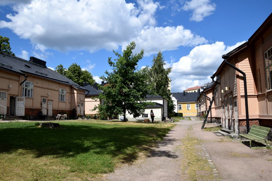Le groupe de petites maisons ouvrières de Kallio fermées sur elles-mêmes autour d’une cour intérieur évoquent le passé d’Helsinki à l’époque où la plupart des habitations étaient de modestes constructions en bois.