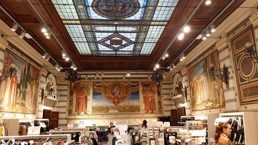 A force de recherche, j’ai pu découvrir qu’elle a été inaugurée fin 1929 et dessinée par les architectes Federigo Severini et Giulio Buoncristiani et construite par la société Bianchi. Mais aucun guide ne mentionne ce bâtiment exceptionnel richement décoré à l’extérieur avec des fresques au-dessus de ses fenêtres à meneaux, comme à l’intérieur avec des vitraux, des poignées de portes ou des suspension en fer forgé très travaillé, le tout dans un style néo-gothique, néo-roman.