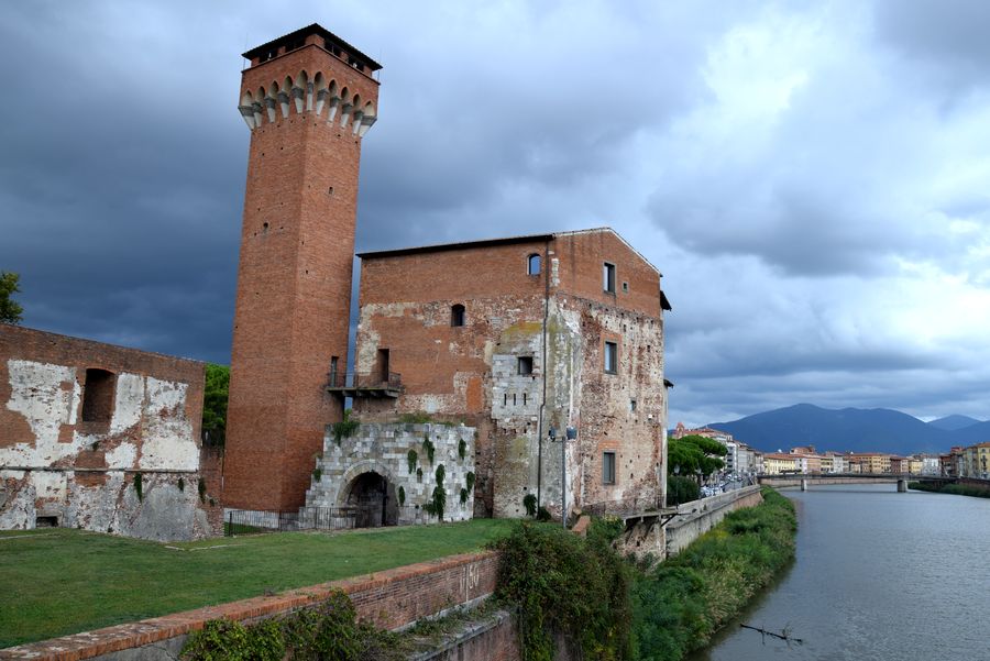 J’apprécie la majesté des bâtiments industriels qui savent si bien raconter l’histoire d’une ville, d’un pays. J’aurais aimé pouvoir visiter cet arsenal, malheureusement, le musée était privatisé pour un mariage à des heures habituelles de visite… Enfin la citadelle du 15e siècle avec la Tour Guelfe du 13e siècle clôture de ce côté de l’Arno.