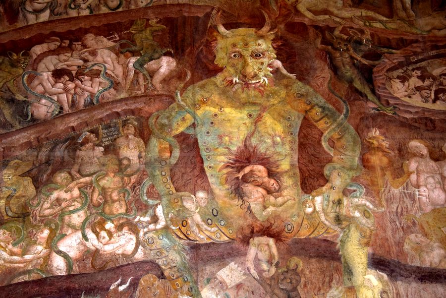 Mais ses fresques murales sont saisissantes par ampleur et les scènes qu’elles représentent avec une imagination, une créativité et une minutie rares : l’enfer, le triomphe de la mort ou le jugement dernier sont à couper le souffle.