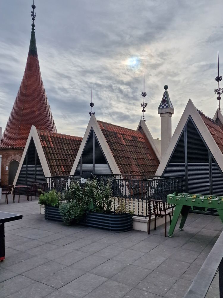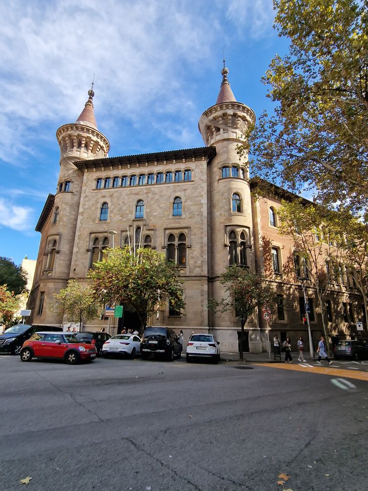 Las Punxes ou casa Terradas. De grandes tours pointues s’élancent vers le ciel d’où le nom « punxes » pointe. C’est Josep Puig i cadafalch qui réalisa cette imposante construction en 1905 pour les trois sœurs Terradas qui étaient ensemble tout en étant chacune chez soi. L’ensemble est massif sans être lourd et les toits sont hérissés de petites constructions triangulaires.