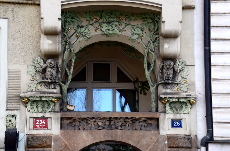 Les rétroliens sont fermés, mais vous pouvez poster un commentaire PRAGUE 24 Des hiboux, de la végétation, un dessus de porte Art Nouveau sur le quai Masaryk à Prague. Photo : City Breaks AAA+, Claude Mandraut